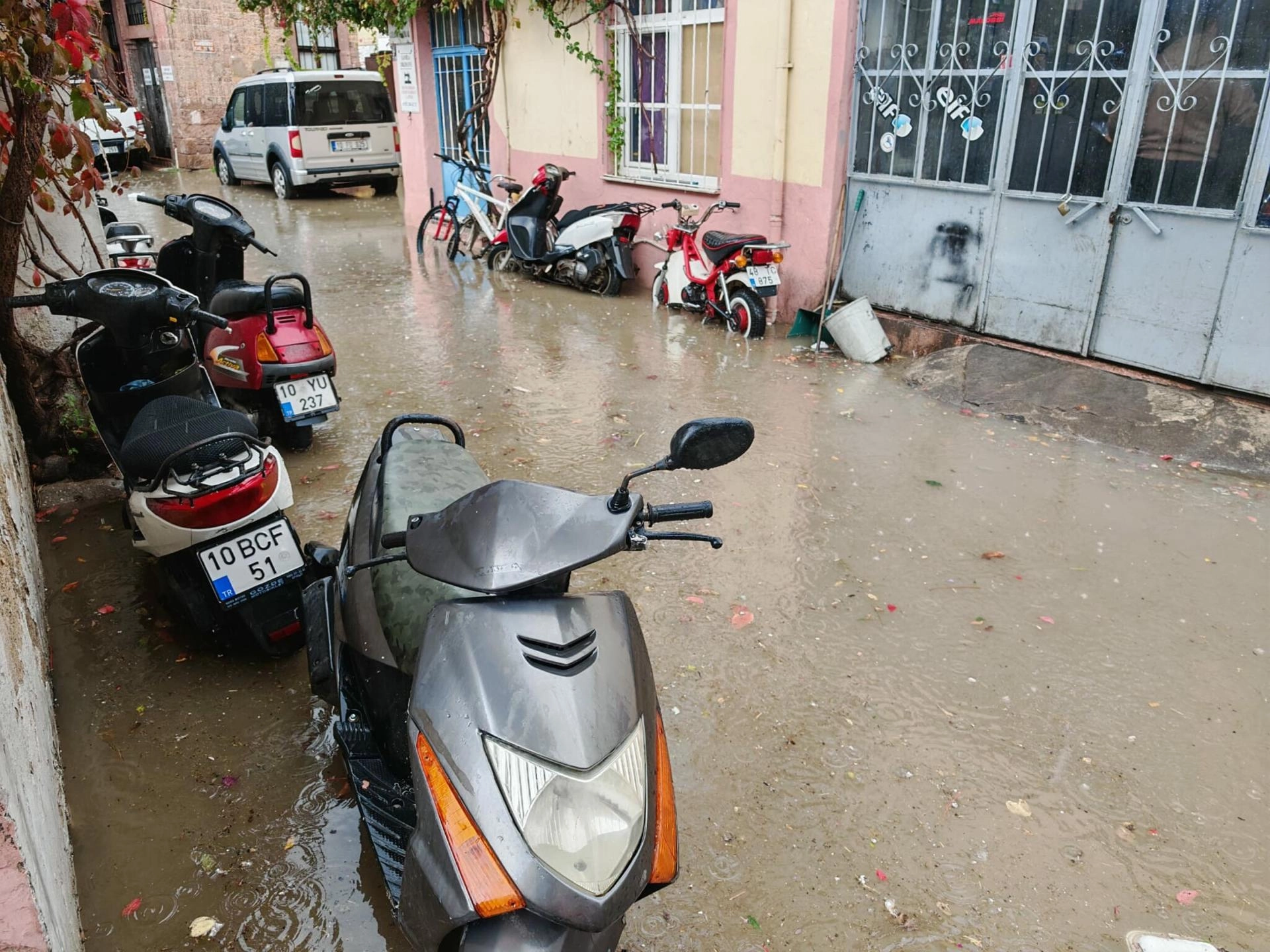 Ayvalık'ta gece saatlerinde başlayan sağanak, hayatı olumsuz etkiledi. Zaman zaman etkisini arttıran sağanak nedeniyle bazı cadde ve sokaklar göle dönerken, bazılarında ise su birikintileri oluştu. Meteorolojiden alınan bilgiye göre, Ayvalık'ta son 24 saatte metrekareye 55 kilogram yağış düştü. Belediye ekipleri, yağışın ardından önlem aldı. (DHA)