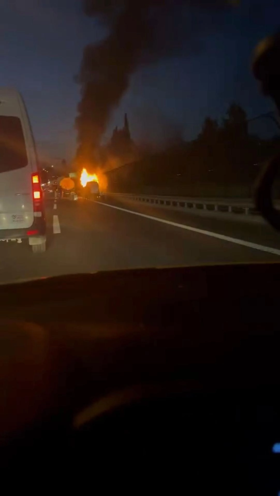 Yangın, saat 19.00 sıralarında TEM Otoyolu Beşiktaş Mevkii'nde çıktı. Edinilen bilgiye göre Esat Y. idaresindeki seyir halindeki minibüsün elektrik aksamında bilinmeyen bir nedenle arıza meydana geldi. Arızanın ardından motor kısmından yükselen alevler kısa sürede büyüyerek minibüsün ön kısmını sardı. Çevredekilerin ihbarı üzerine bölgeye itfaiye, acil sağlık ve polis ekipleri geldi. Alevler itfaiye ekiplerinin müdahalesiyle söndürüldü. Sağlık ekiplerinin kontrollerinde yangında yaralanan kimsenin olmadığı belirlendi. Yangın nedeniyle otoyolda trafik akışı kısa süreliğine kontrollü olarak sağlandı. Minibüsün yandığı anlar çevredeki kişiler tarafından cep telefonu kamerasıyla görüntülendi. (DHA)