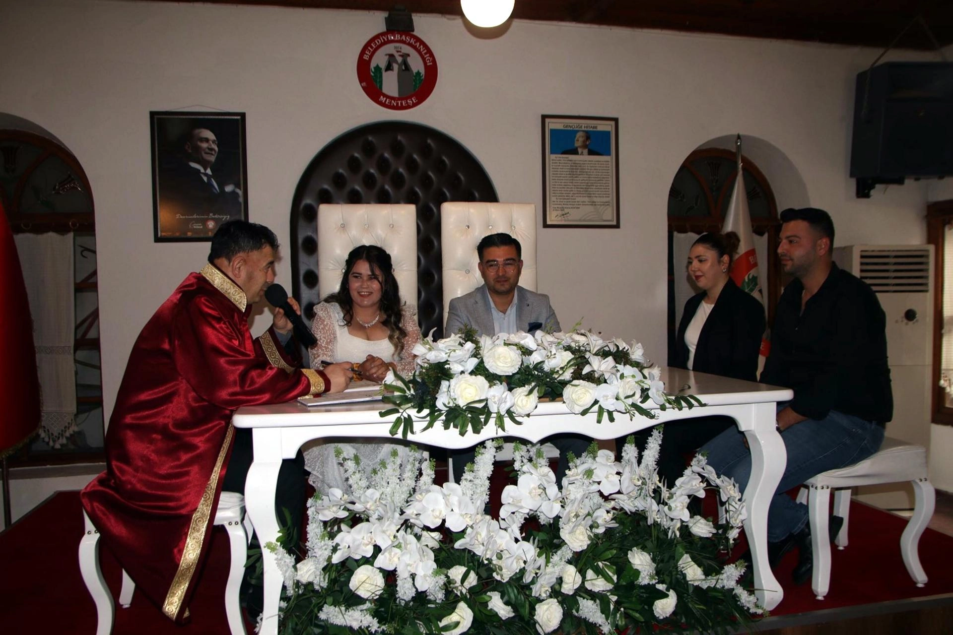 Rakamların uyumunu 'uğurlu tarih' olarak gören Menteşeli çiftler, mutluluklarını sembolik bir günde taçlandırdı. Menteşe ilçesi Konakaltı İskender Alper Kültür Merkezi Nikah Salonu’nda düzenlenen törende Rüstem Ekrem – Nazan Yıldız ile Atiye Erkoç Arslan – Osman Arslan çifti, seçtikleri bu özel günde 'evet' diyerek ömür dünyaevine adım attı. Nikah töreni sonrasında konuşan damat Rüstem Ekrem Yıldız, "1,5 yıl önce tanıştık. Hayatımızın bundan sonraki kısmını da birlikte geçirmek dileğiyle nikah tarihi olarak bugünü seçtik. Bugün özel bir tarih, 11.11 2025. İnşallah uzun bir ömür birlikte geçiririz" dedi.